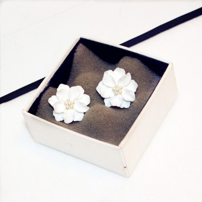 New South Korea delicately exaggerated white pearl flowers earrings female and American fashion temperament earbuds 925 silver ornaments