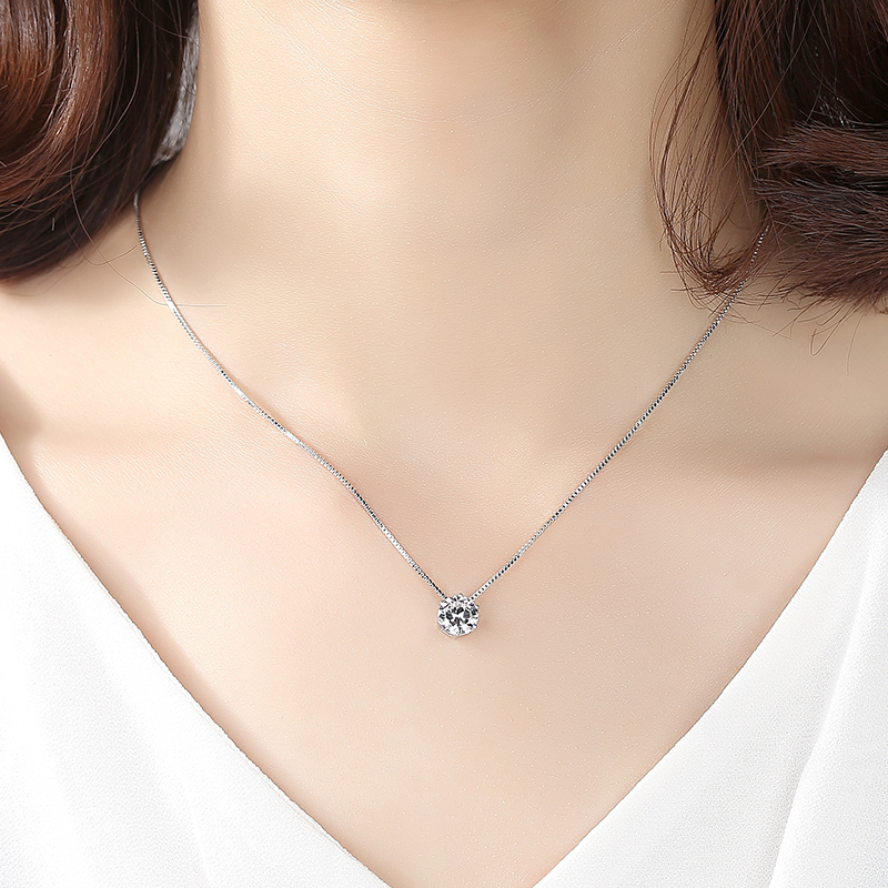 Tang Yan the same S925 silver single diamond necklace female Korean version of simple temperament flash diamond clavicle chain fashion necklace gift