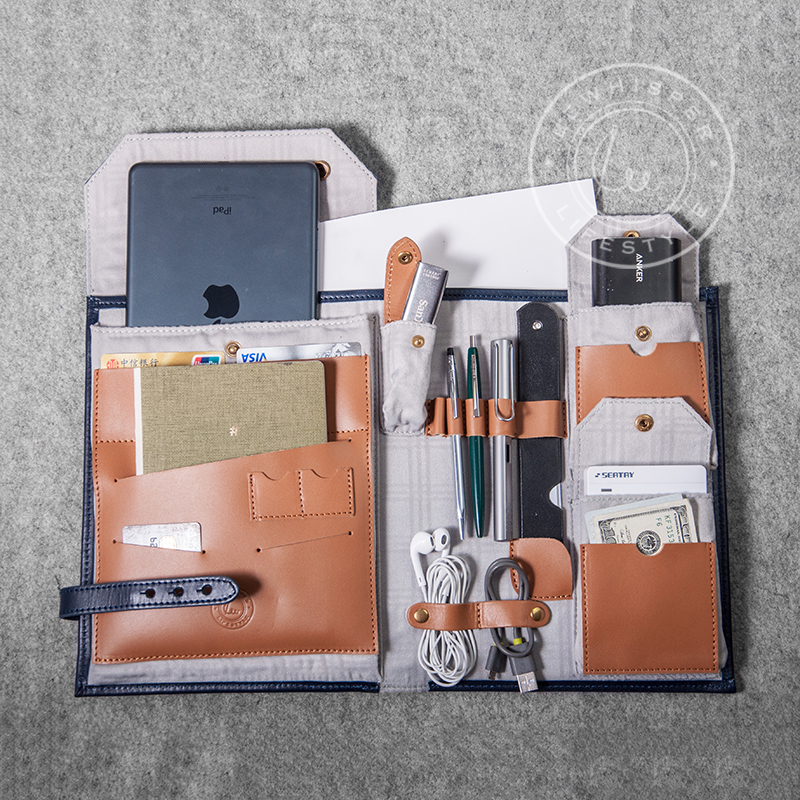LeWhisper handmade first layer cowhide Designer Multi-purpose large capacity Folding body handbag toolkit