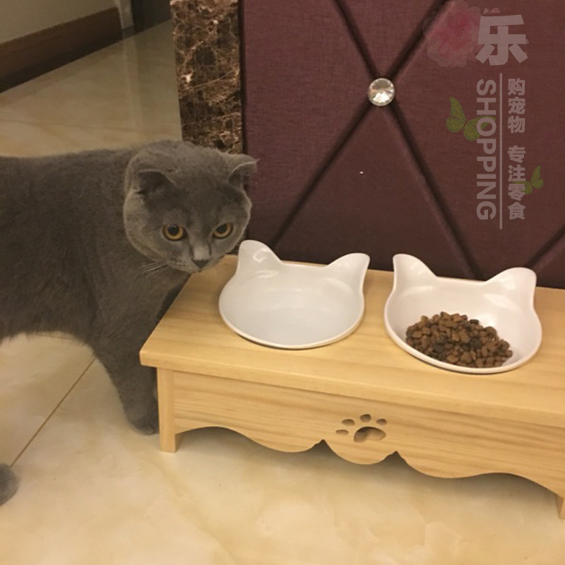 Cat bowl ceramic pet dining table cat food bowl double bowl cat bowl cat food bowl oblique mouth bowl pet bowl shelf dog bowl