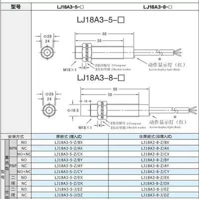 Shanghai two-open proximity switch LJ18A3-8-Z BX BY AX AY EX J DZ normally open normally closed PNP