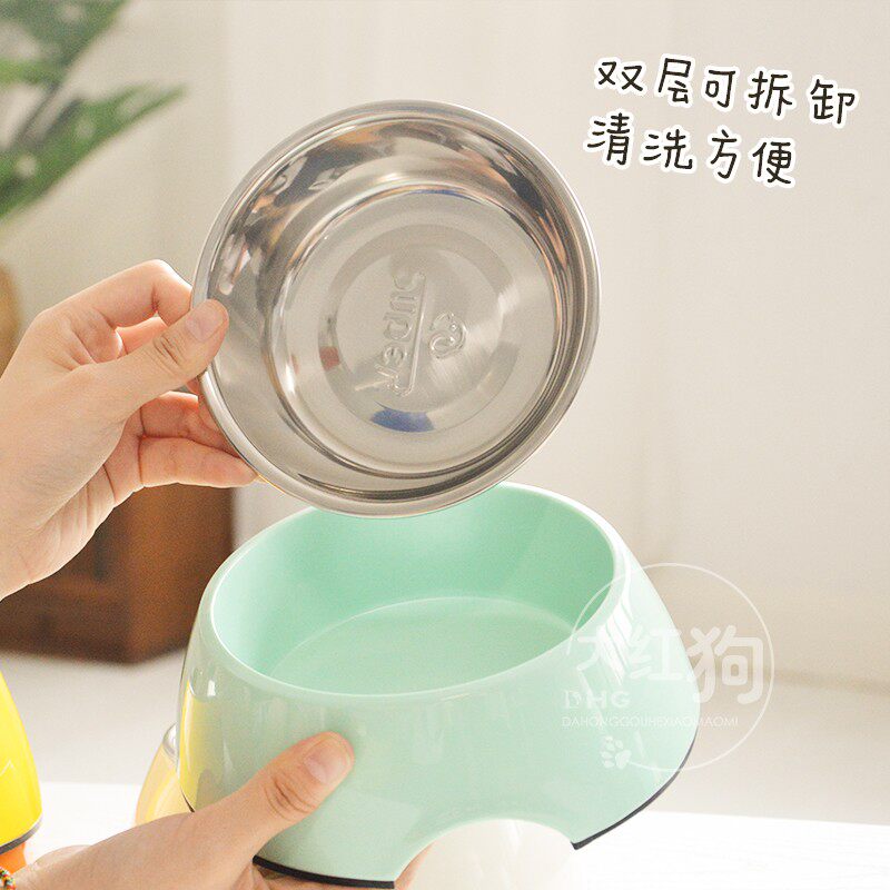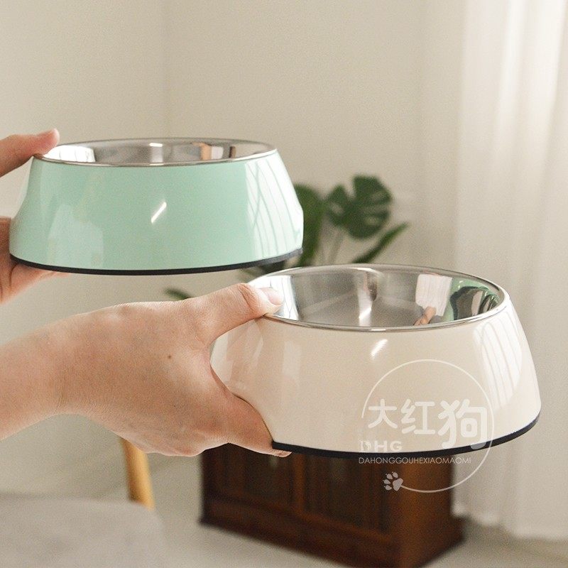 Hup Pure Color Double Layer Stainless Steel Dog Eating Bowl Teddy Food With Infighting Water Bowl Rab Golden Fur Dog Bowl chai Dog-Taobao