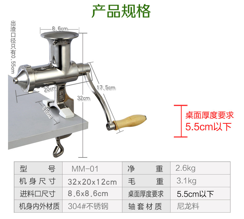 Hand all stainless steel juicer 304 stainless steel wheat juicer Ginger juicer
