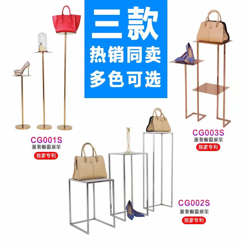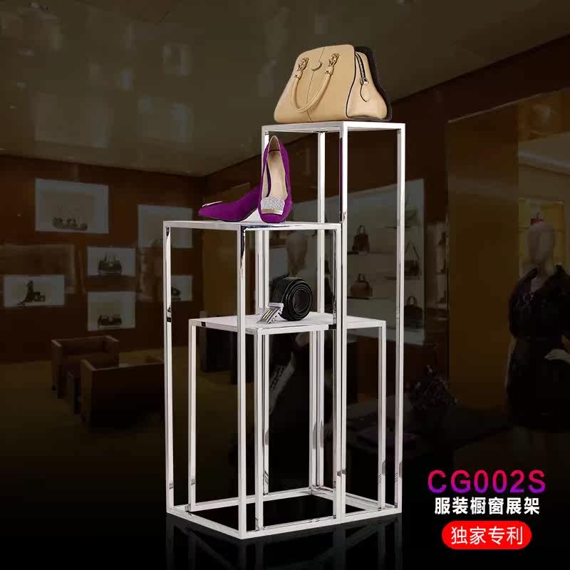Stainless steel window display rack combination shoe bag clothing store display rack high and low display rack props
