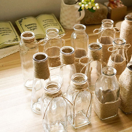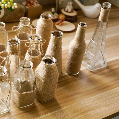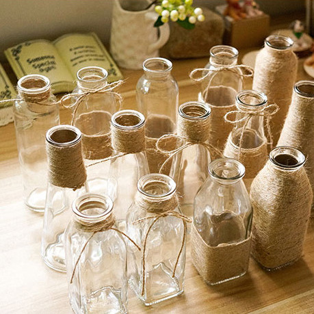 Nordic Creative Pure Handmade Hemp Rope Decoration Vases Zakka Glass Art Desktop Pendulum Pieces Dried Flower Hydroponic Vases