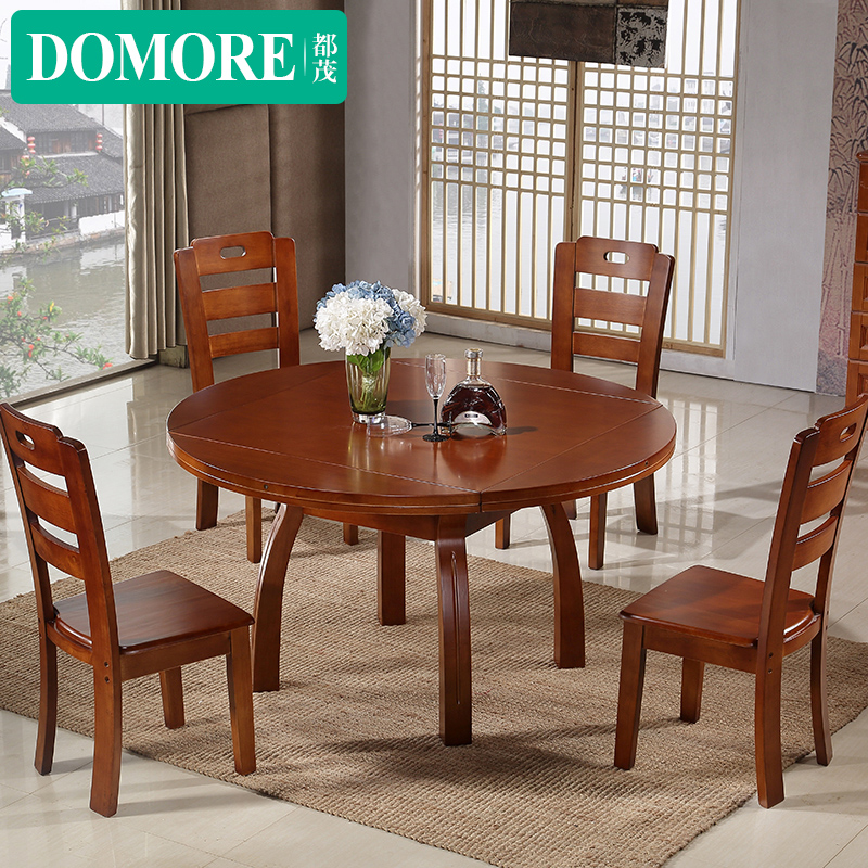 All lush modern Chinese solid wood dining table and chairs combined with four sides folding square and round two-purpose dining table One table 46 chairs