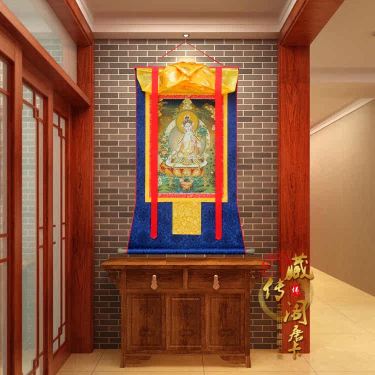 Tibetan Pavilion White mother portrait Nepali embroidery National Tang brocade Thangka painting Tibetan Buddhist Bodhisattva hanging painting