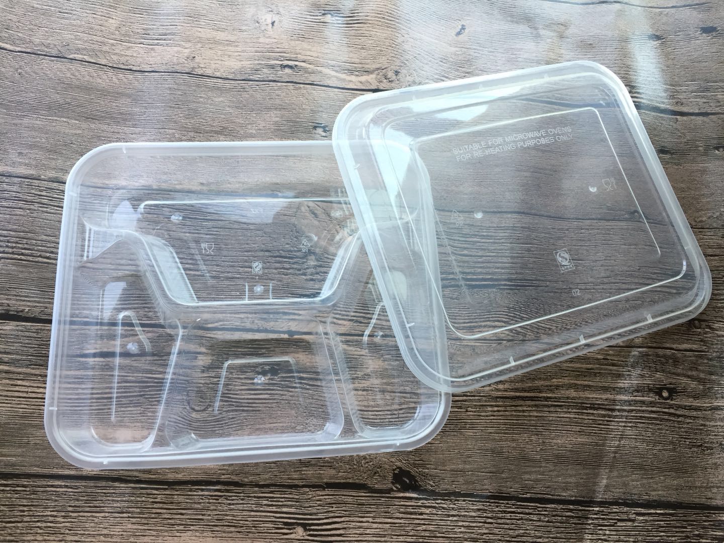 High-end three-grid plastic packaging box disposable snack box Four-grid lunch box 5 extra-delivered lunchbox Sub-style with lid
