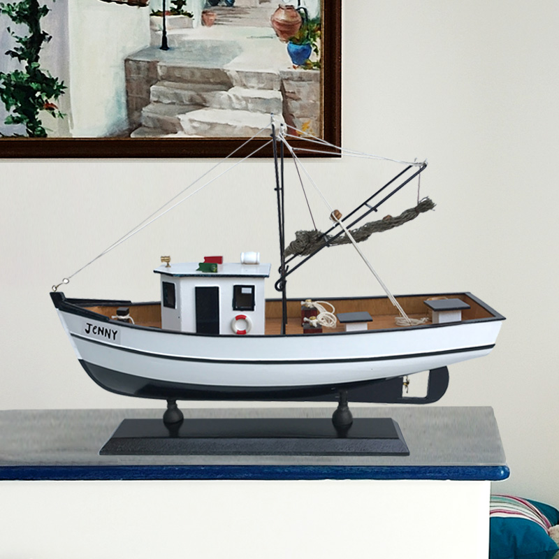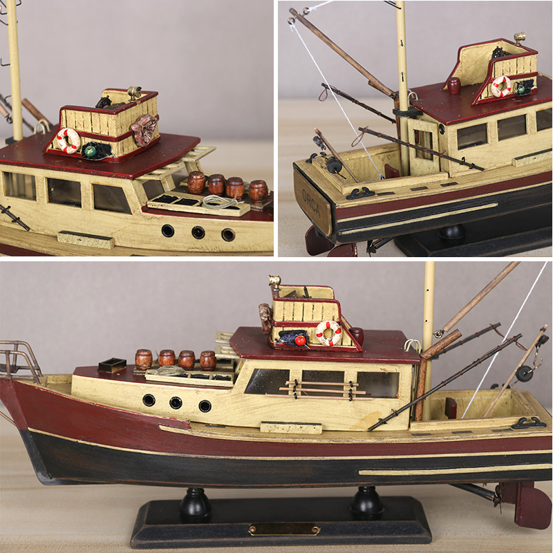 Hollywood film American craft fishing boat model living room pendulum solid wood boat decorated with great white shark number shark fishing boat