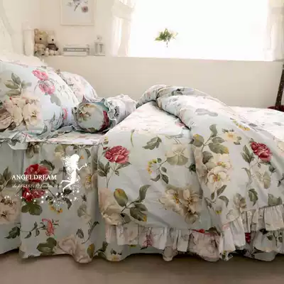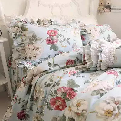 Imported European and American Korean-style European garden ruffles cotton bedding cotton bed skirt four-piece set