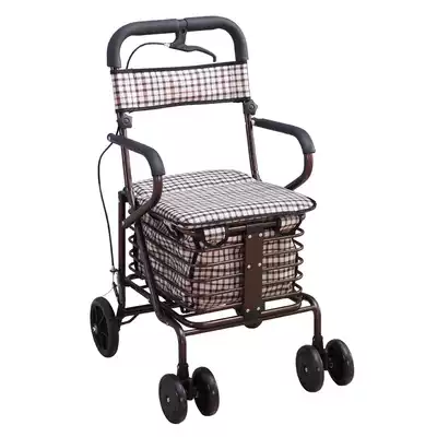 The elderly scooter folding shopping cart seat can sit on four wheels to buy vegetables, the walker can push and pull the car, the elderly trolley