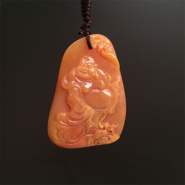 Changhua chicken blood stone Changhua Tian Huangshi thin art carving pure handmade one thing one product Maitreya Buddha cloth bag monk