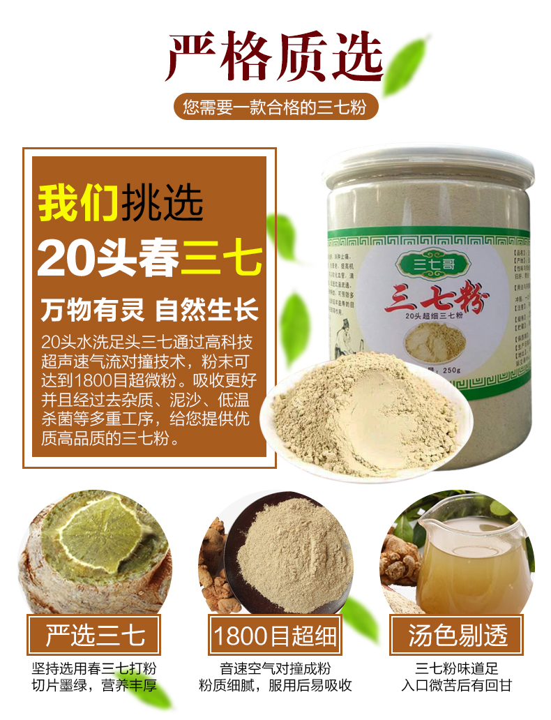 Notoginseng powder Wenshan wild super 20 Tongrentang Yunnan ultrafine 250g pure flagship store 37 powder