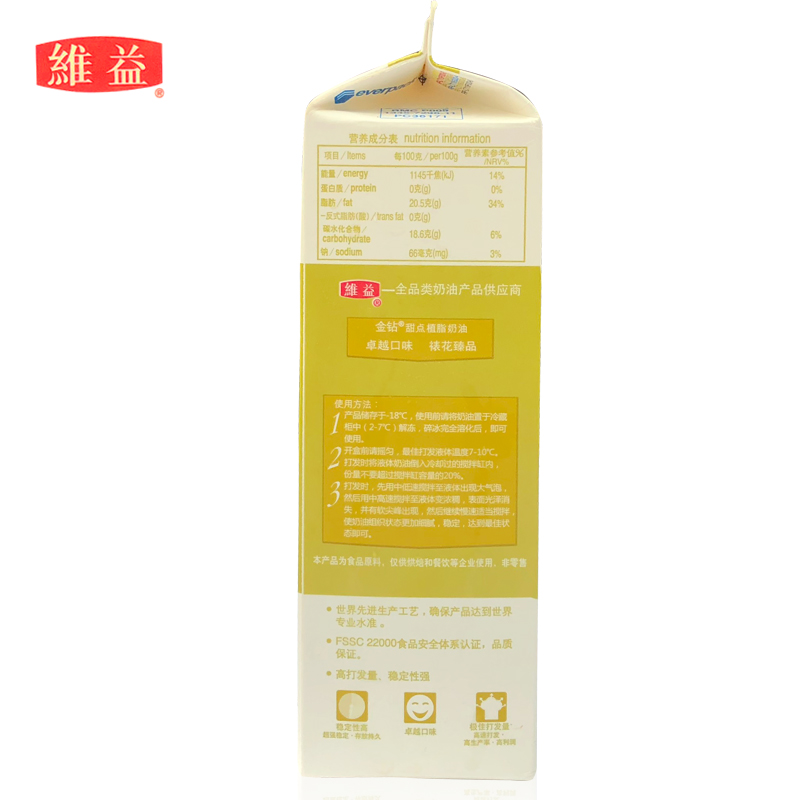 Weiyi gold diamond vegetable fat cream 1L * 12 boxes of plant-based cream sweet cream sweet cream cake decorating baking ingredients