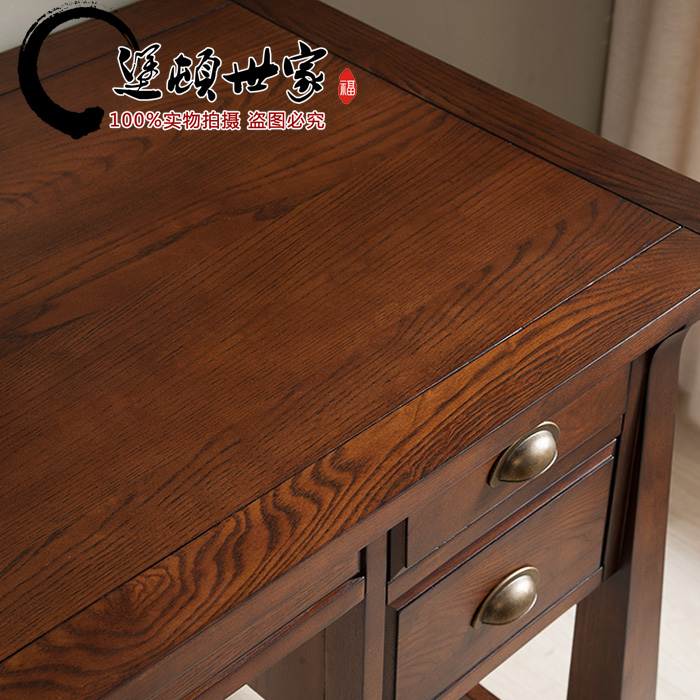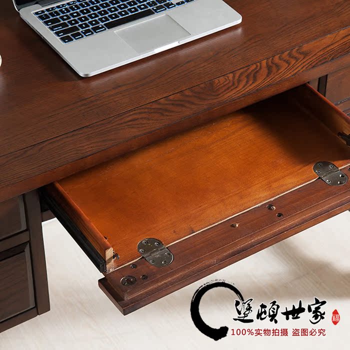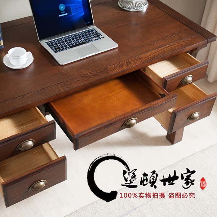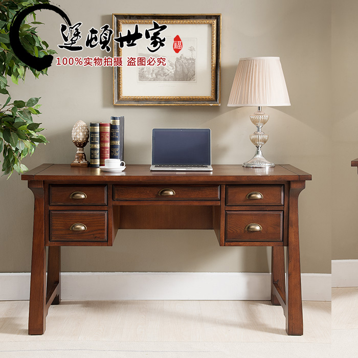Hot sale American style furniture all solid wood Yibai wax coffee color open lacquer old keyboard drawer desk computer desk