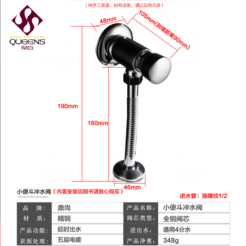 Dingshang All-copper urinal flush valve Hand-pressed urinal flush valve Powder room toilet urinal delay valve