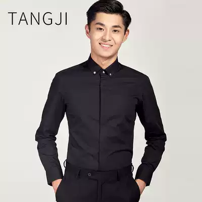 Black shirt men's long-sleeved business casual men's shirt Formal slim-fit free ironing handsome Korean inch shirt clothes