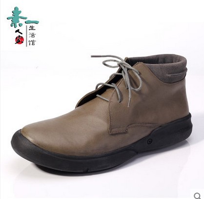 2016 Autumn Winter New Breathable High Cylinder Shoes Fashion Lacing Thick Bottom Genuine Leather Board Shoes Sports Casual Men's Shoes Vegetarian