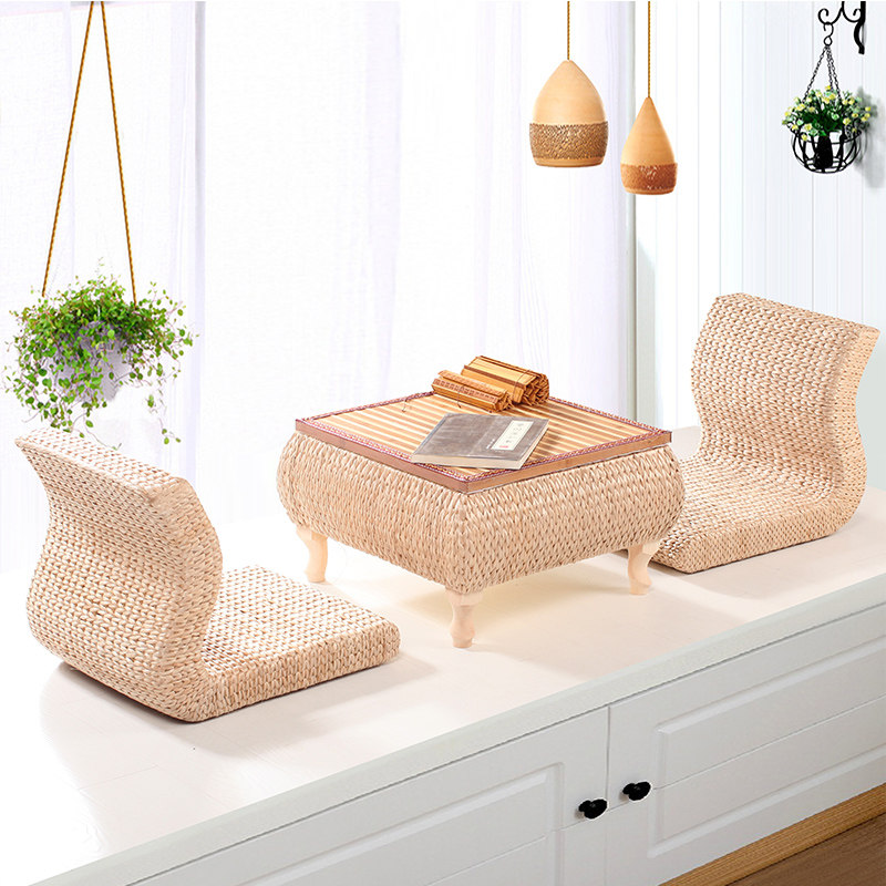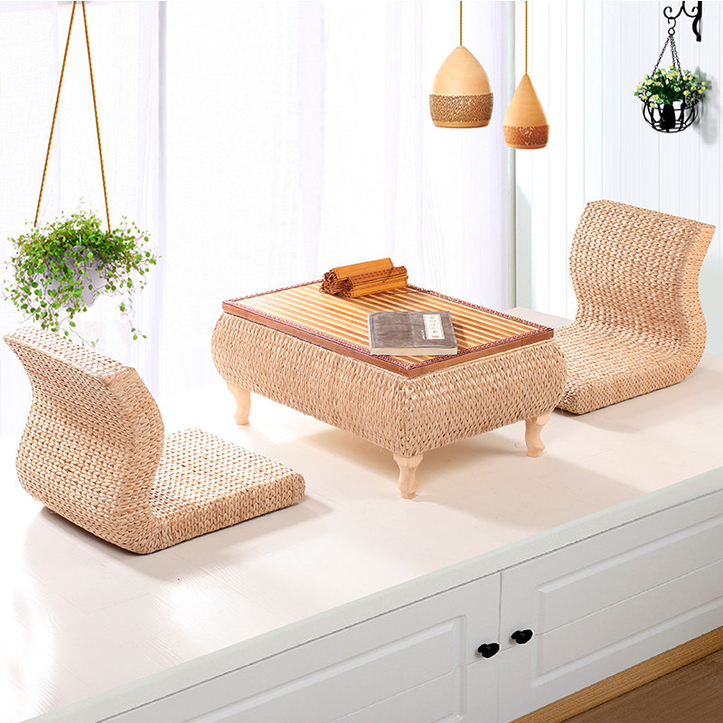 Straw rattan creative tatami coffee table Japanese low table bay window coffee table solid wood windowsill table floor small table kang table