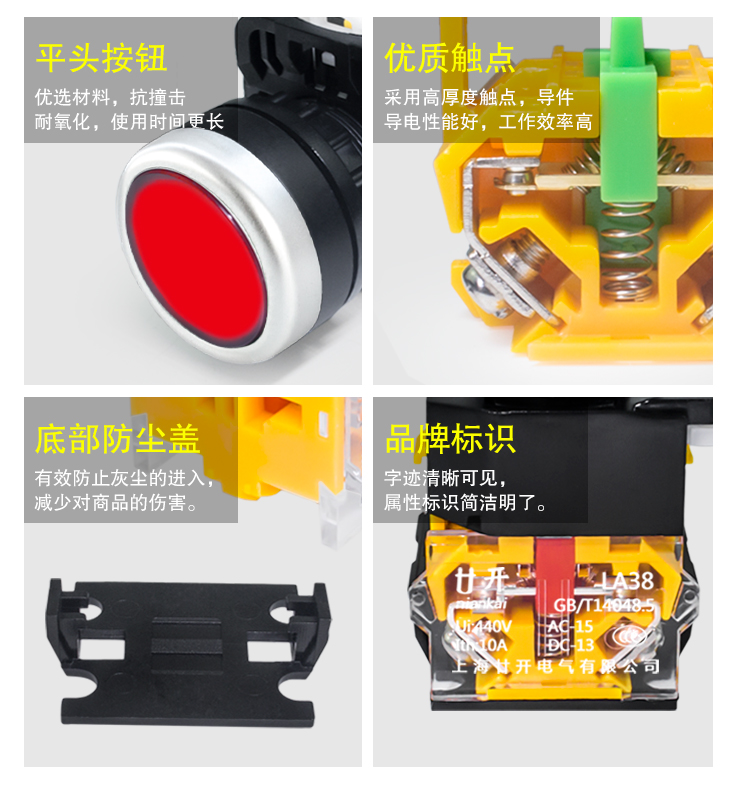 Push button switch LA38-11BN FLAT button self-reset OPENING 22MM ONE open and one close RED, yellow, green, blue AND white self-locking
