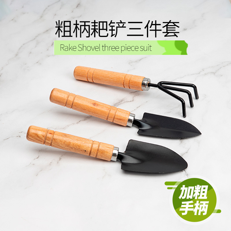 Succulent potted plant small shovel gardening tools planting wooden handle small shovel small iron rake small shovel mini three-piece suit