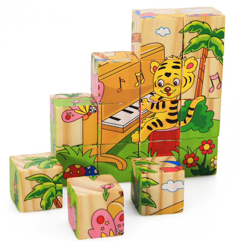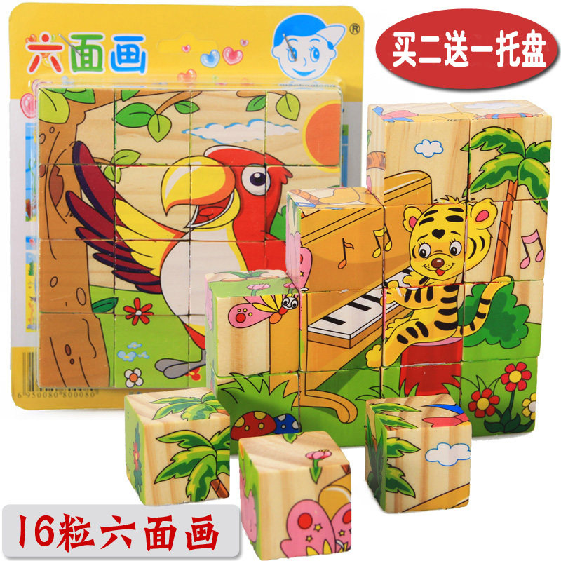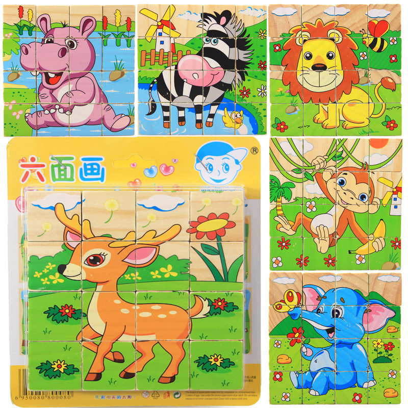 16 children's six-sided painting puzzle wooden 3D vertical volume wooden early education puzzle children's toy gift