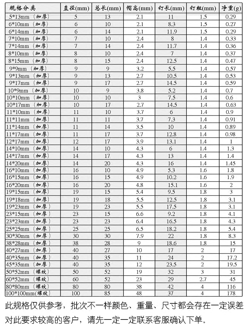14 14 * 10mm (nail length about 6) 100 Price 14 * 14mm (nail length 10) 100 Price 14 * 17mm (nail length about 13) 100 Price 14 * 20