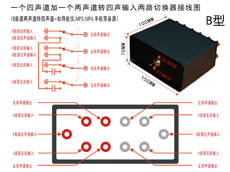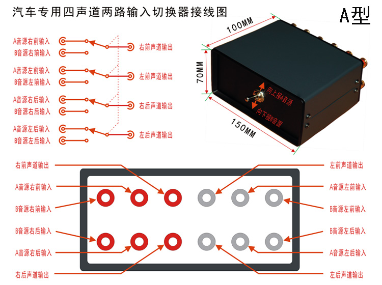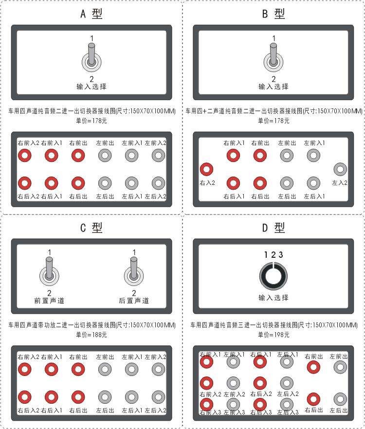 Four-channel two-way audio signal input switcher with gold-plated RCA socket suitable for car audio conversion