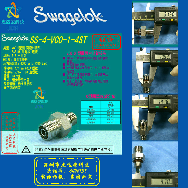 (SS-4-VCO-1-4ST) SwagelokVCO Connector 1 4in VCOx716-20 Straight Thread