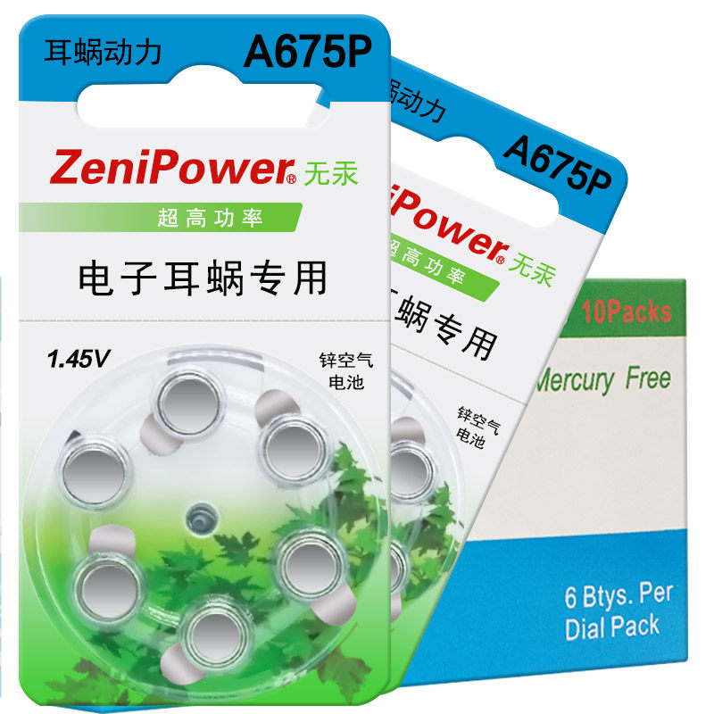 Battery 60 original cochlear implant hearing aid battery A675P ear pot zinc air button electronic PR44P