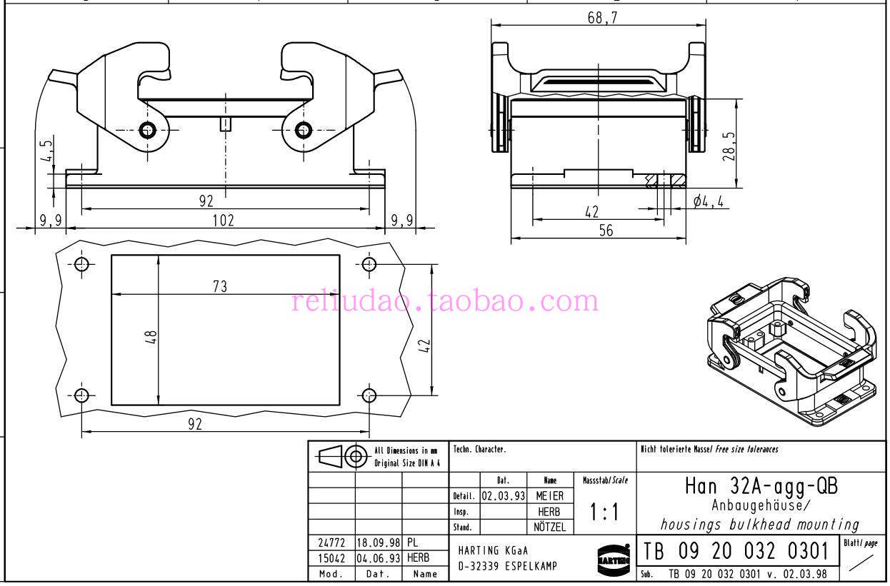 HARTING connector 09200320301 Double snap base HAN-32A-agg-QB original spot
