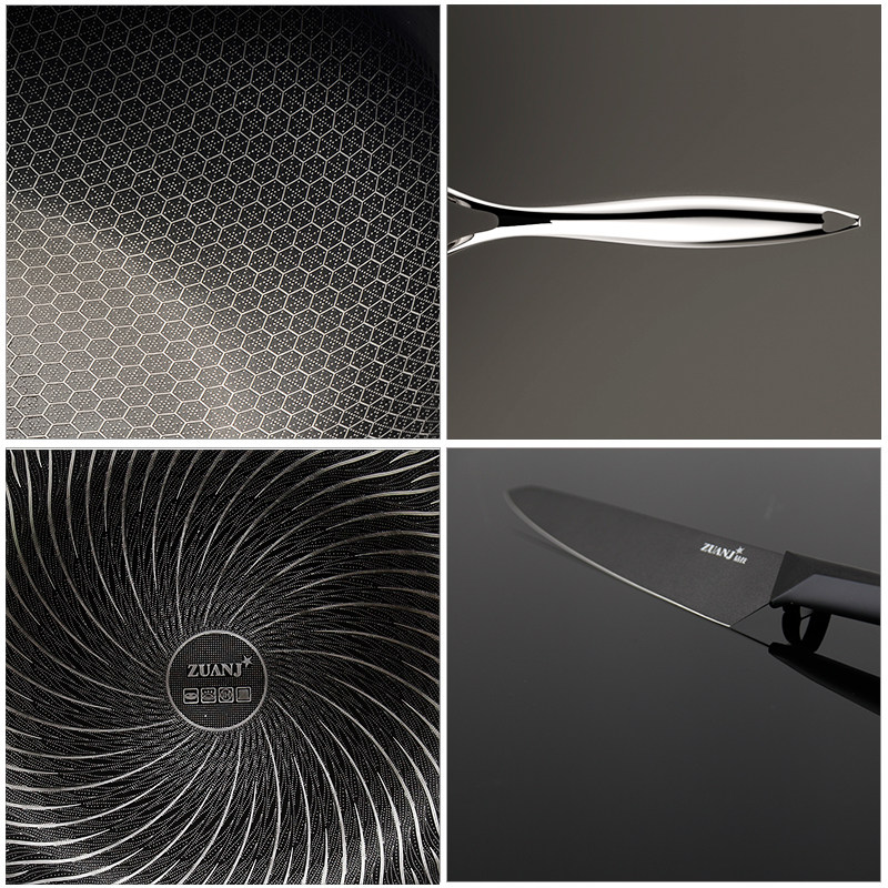 Drill skill pot set pot set pot set stainless steel non-stick pan frying pan frying pan soup pot five piece set induction cooker universal