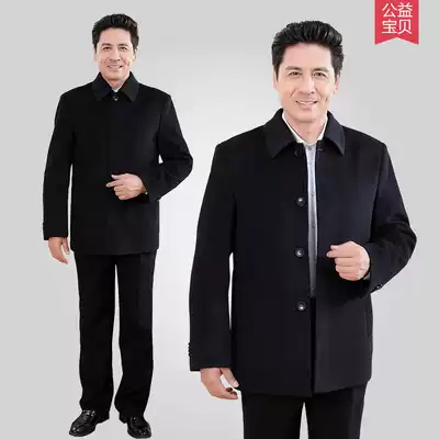 Cashmere woolen middle-aged men's woolen coat medium and long version of slim body size winter coat middle-aged and elderly windbreaker father dress