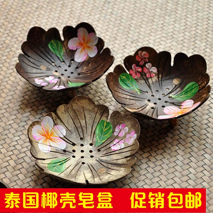 Thailand imported handmade coconut shell leaf shape soap box can drain coconut shell soap tray new and unique soap box