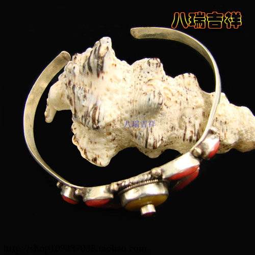 Nepal Handicraft ethnic characteristics 925 silver inlaid pure natural red gem honey wax bracelet