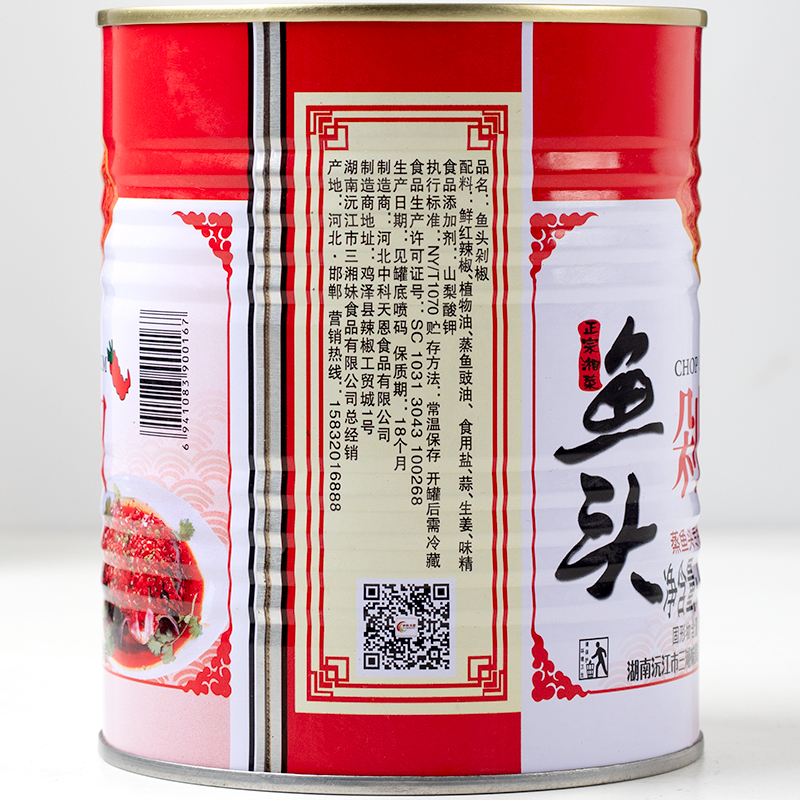 Steamed flavored fish head red chili pepper 900g canned characteristic spicy red pepper sauce Catering household steamed fish chili pepper seasoning