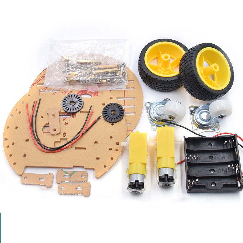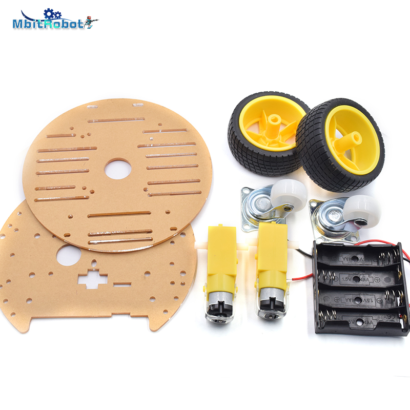 Suitable for arduino intelligent trolley round chassis double layer four-drive tracing barrier strong magnetic motor RT4 trolley