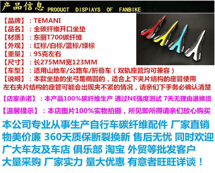 TEMANI Ultra Light Carbon fiber Mountain Road Bike Lightweight full carbon open seat cushion seat bag