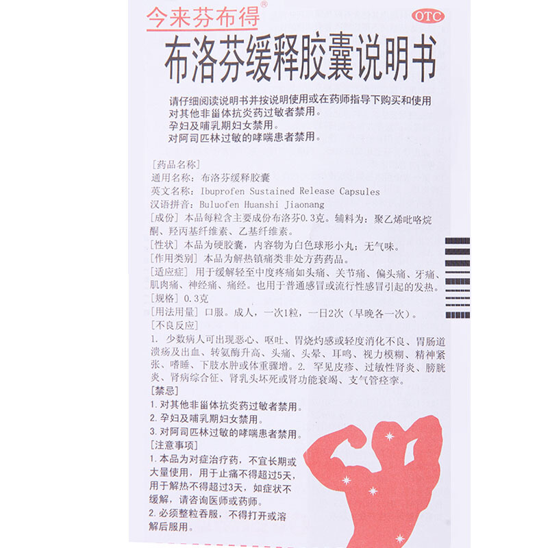 ) Jinlaifenbud Ibuprofen sustained-release capsules 20 tablets Relieve cold medicine pain pharmacy flagship store