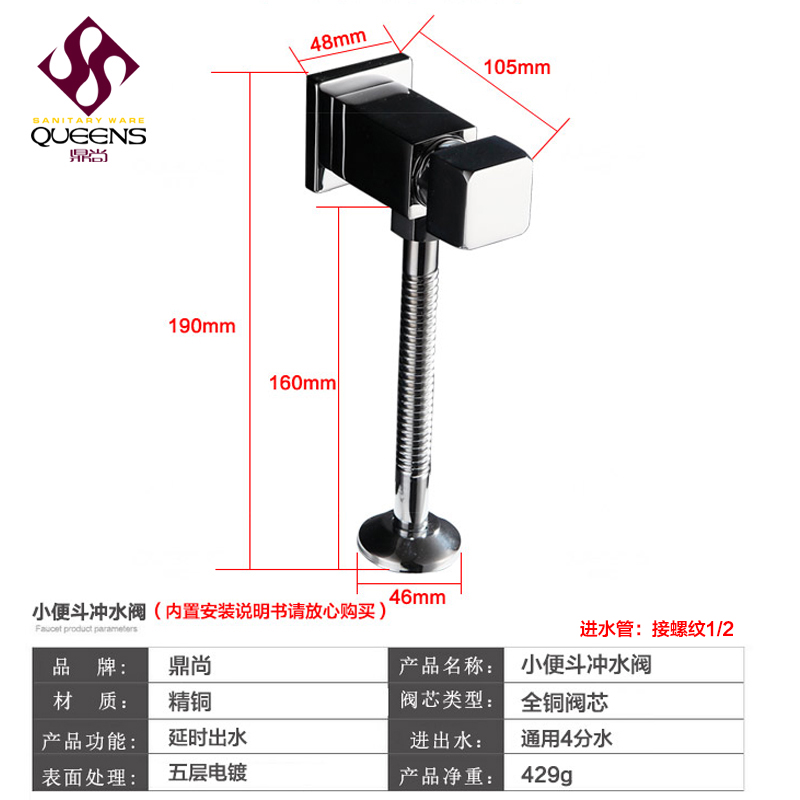 Dingshang all-copper urinal flush valve bathroom urinal delay valve hand-pressed urinal flush valve