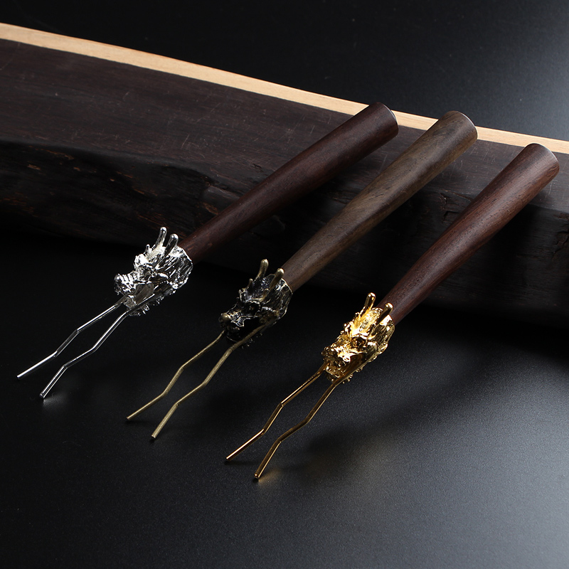 Condor kettle fork Kung Fu tea set Tea ceremony accessories Iron pot Copper pot Silver pot Special tools Ebony handle Faucet fork