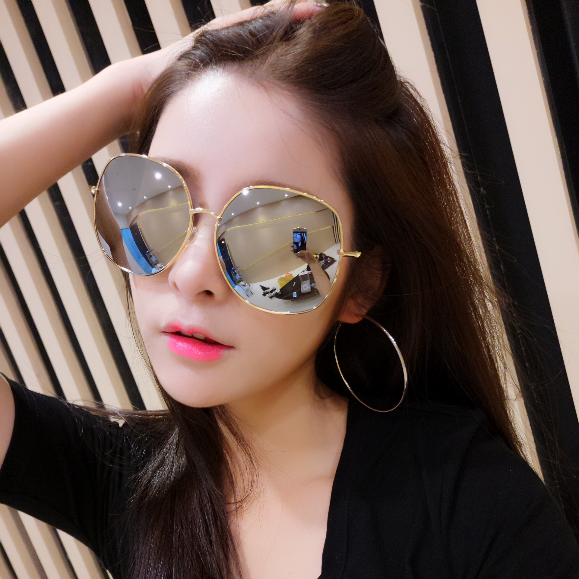 Online Red Sunglasses Female Korean version of the wave Large frame Thin Retro Fashion Street Clapping Round Face 2021 New Sunglasses Female Tide