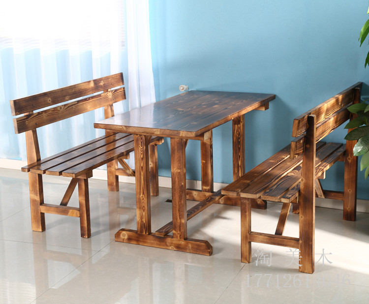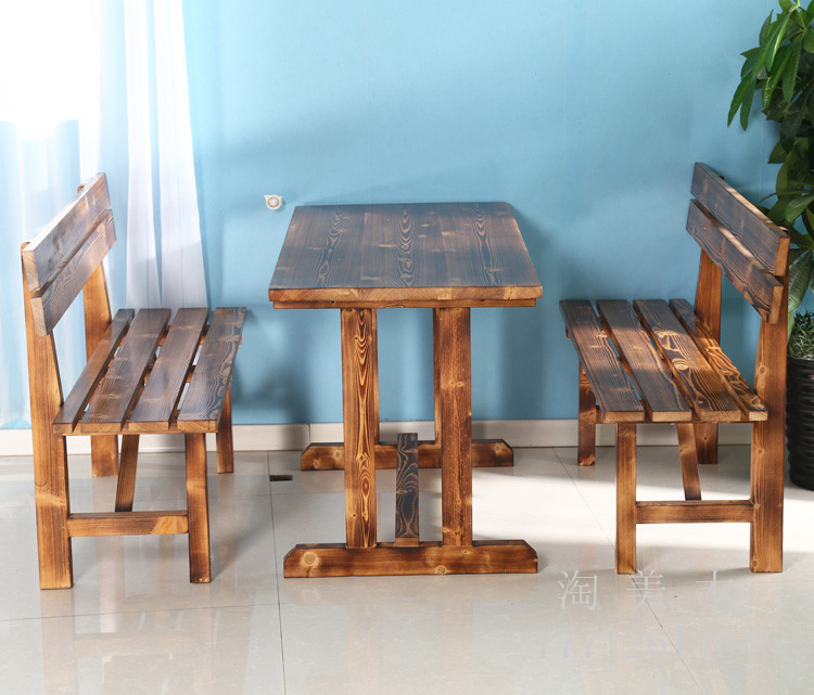 Customized solid wooden table chair rectangular table bench backchair Backchair Backroom Barbeck Restaurant Outdoor courtyard park chair