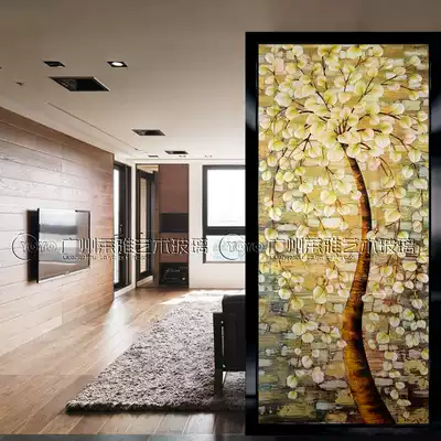Art glass European-style screen partition wall home decoration porch living room carving process carving deep carving process fortune tree