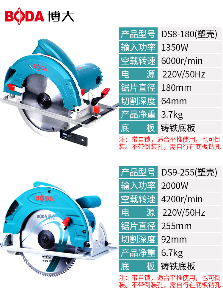 DS8-180 (7-inch plastic case without saw blade 1350W) can be flipped and self-locked. Gift bag DS8-180 7-inch 60-tooth saw blade (flipped and self-locked) Gift bag D
