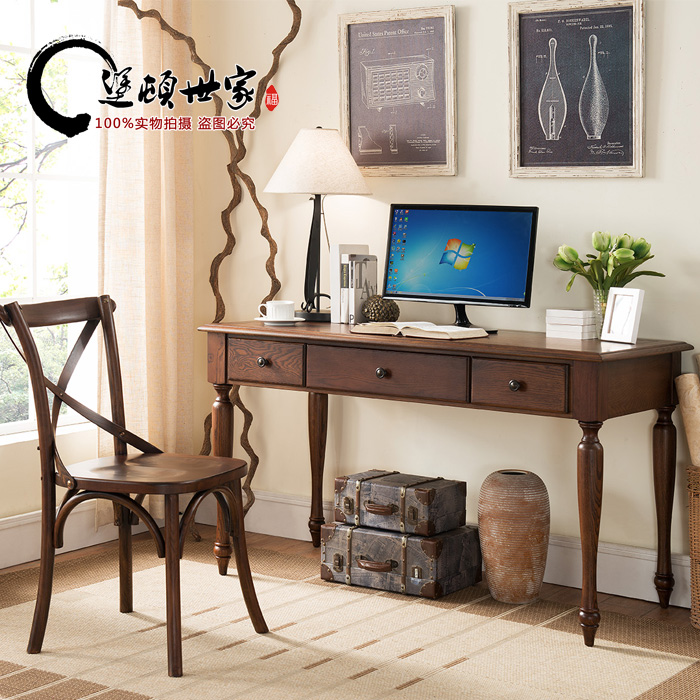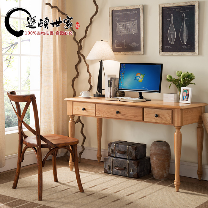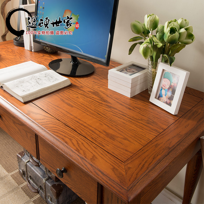 American antique old simple solid wood red Oak keyboard pumping computer desk Student adult desk