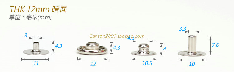 Japan THK (12mm) dark side Four-in-button snap button concealed with 10 set price by button opening ring