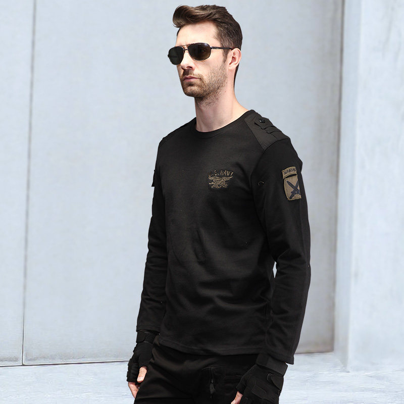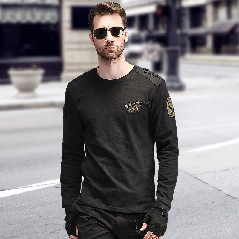 Military field line outdoor spring and autumn men's long-sleeved T-shirt tooling tactical top casual loose round neck long-sleeved inner wear