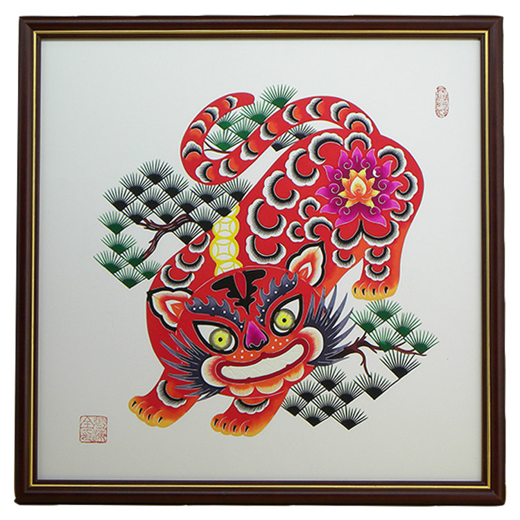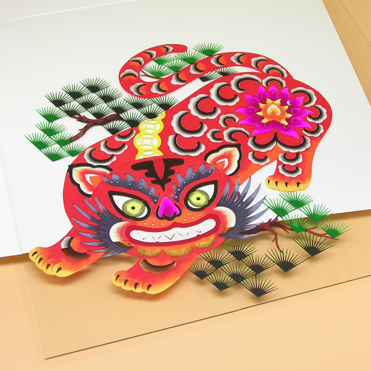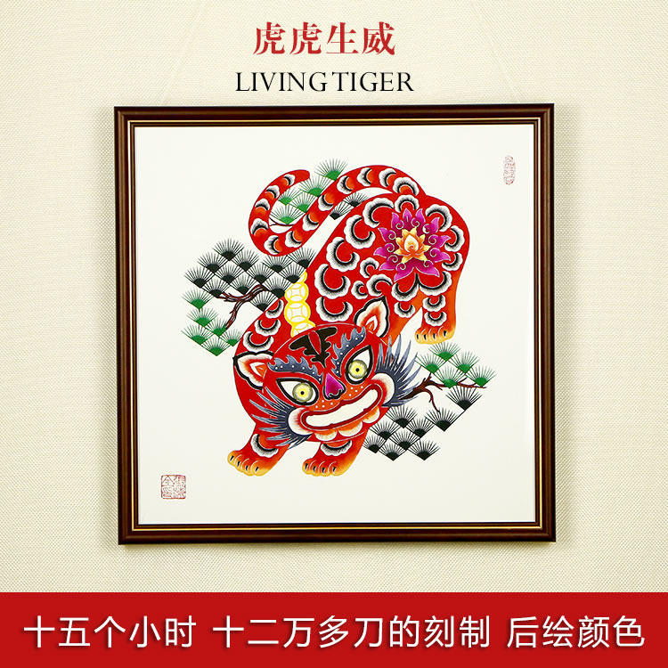 Chinese Characteristics Tiger Year Cut Paper Finished Duozodiac Zodiac Pure Hand Cut Paper Decoration Painting China Wind Gifts for Old Foreign