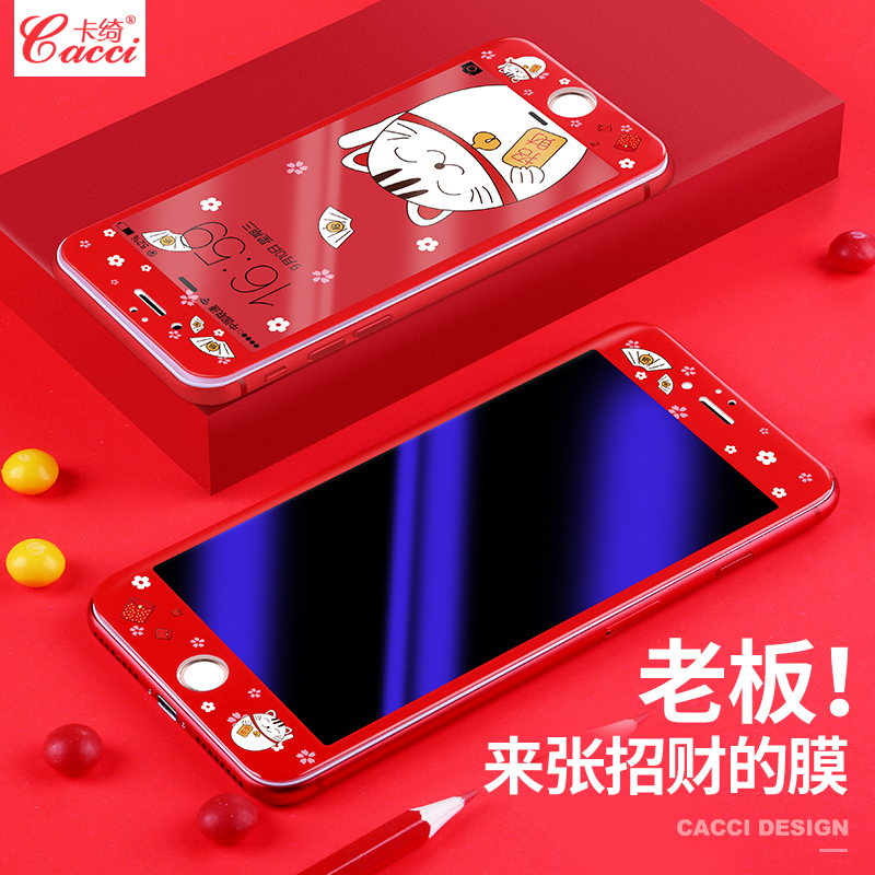 Carqi Blue Nano iphone6 Steel Chemical Film Fullscreen Apple 6s Plus Explosion Protection Color Film 6 Generations Cartoon Cling Film 6sp Cartoon Cute Full Coverage 6p Full-Pack Edge Six Anti-Fingerprint Just Chemical Protection